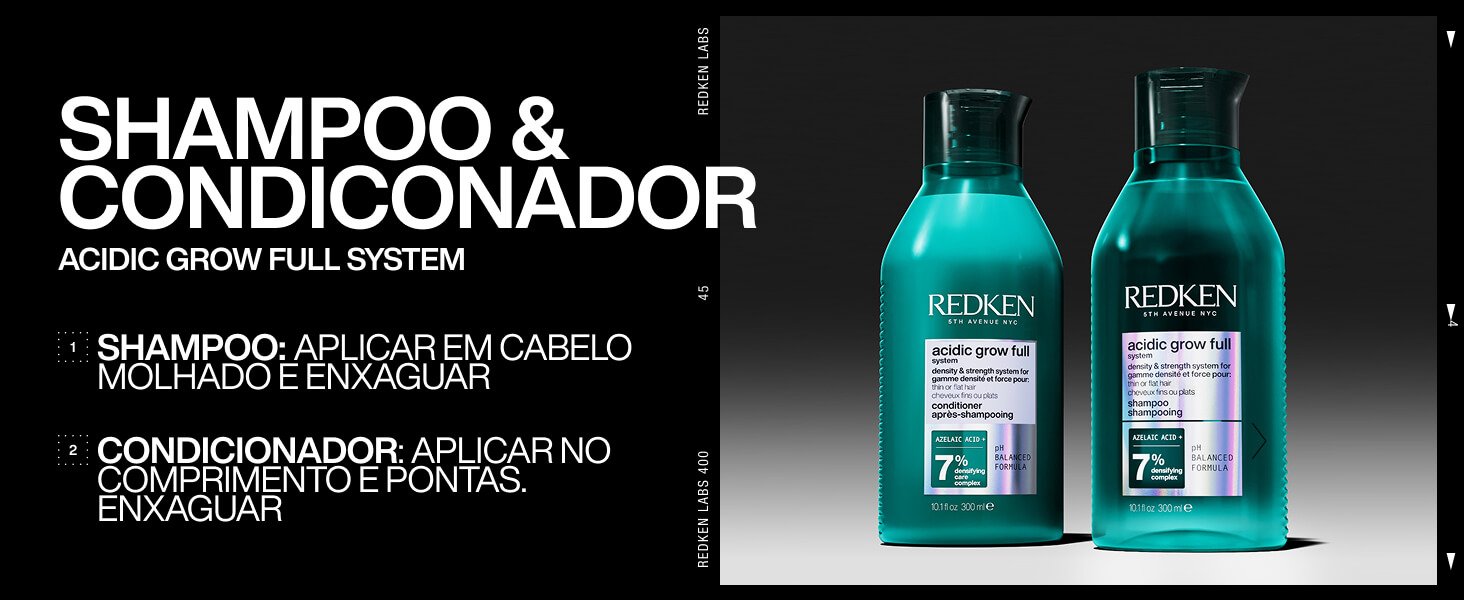 Aplicar sobre cabelo húmido. Massajar até fazer espuma. Enxaguar abundantemente. Para obter melhores resultados, aplicar de seguida o condicionador de densidade Acidic Grow Full System.